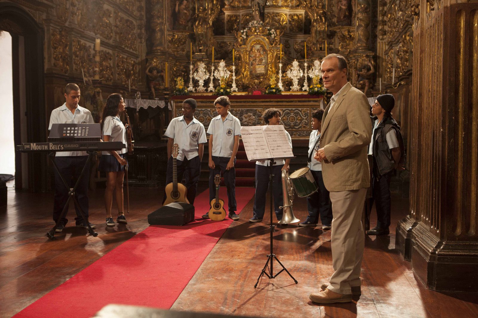 Dois mundos colidem ao longo da projeção de Filhos de Bach: o rígido Marten, que só toca quando tem uma partitura a sua frente, e as crianças brasileiras animadas que tocam de improviso e deixam sua habilidade correr solta.