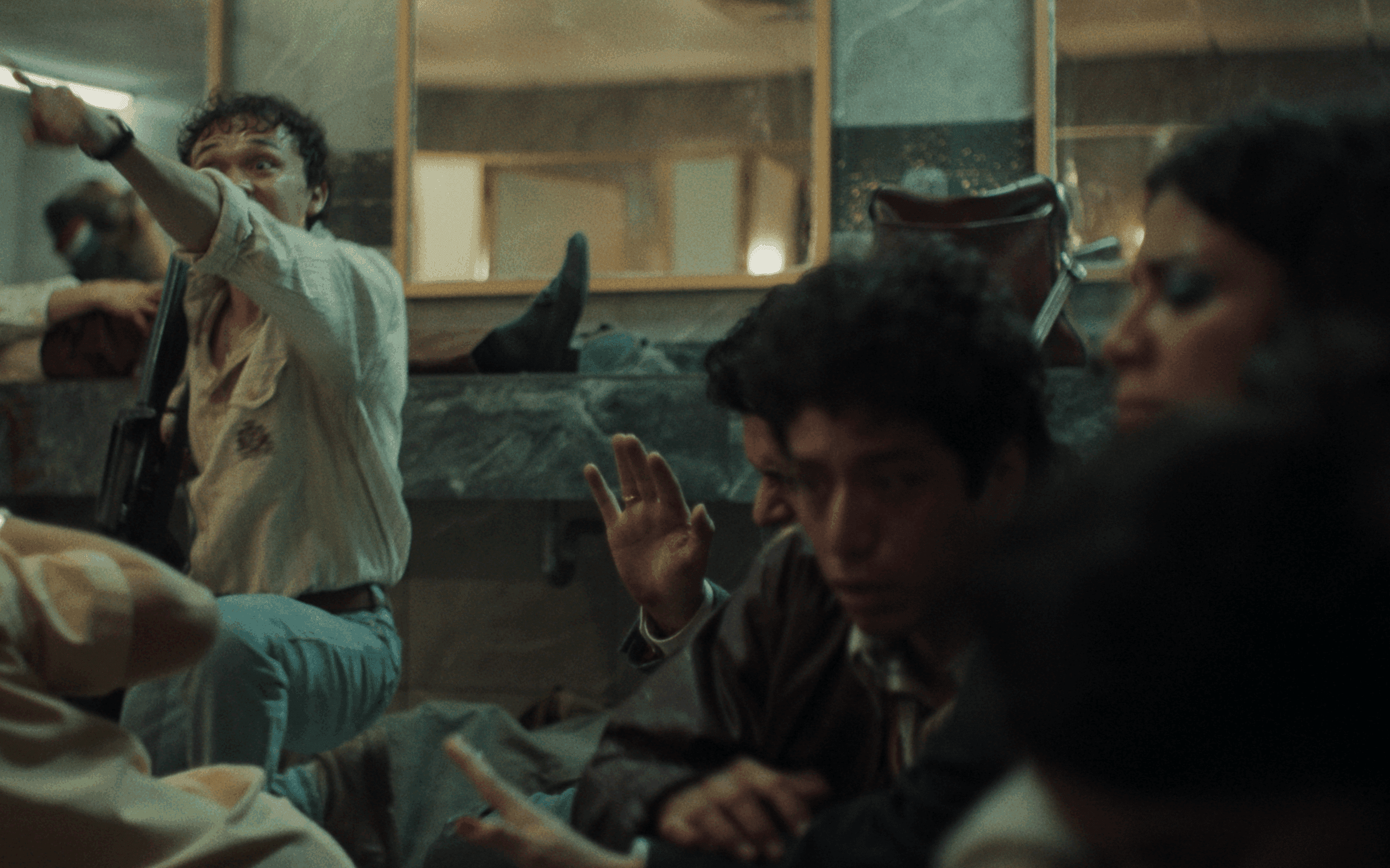 Novembro é um daqueles filmes que parecem respirar o mesmo ar rarefeito que seus personagens. Confinado quase inteiramente dentro de um banheiro, o longa dirigido por Tomás Corredor transforma o espaço limitado em um microcosmo da Colômbia dos anos 1980 — um país dividido entre ideais e sobrevivência. A trama, baseada em fatos reais, revisita a tomada do Palácio da Justiça em 1985, quando guerrilheiros do M-19 e civis ficaram encurralados em meio a um confronto devastador com o exército.