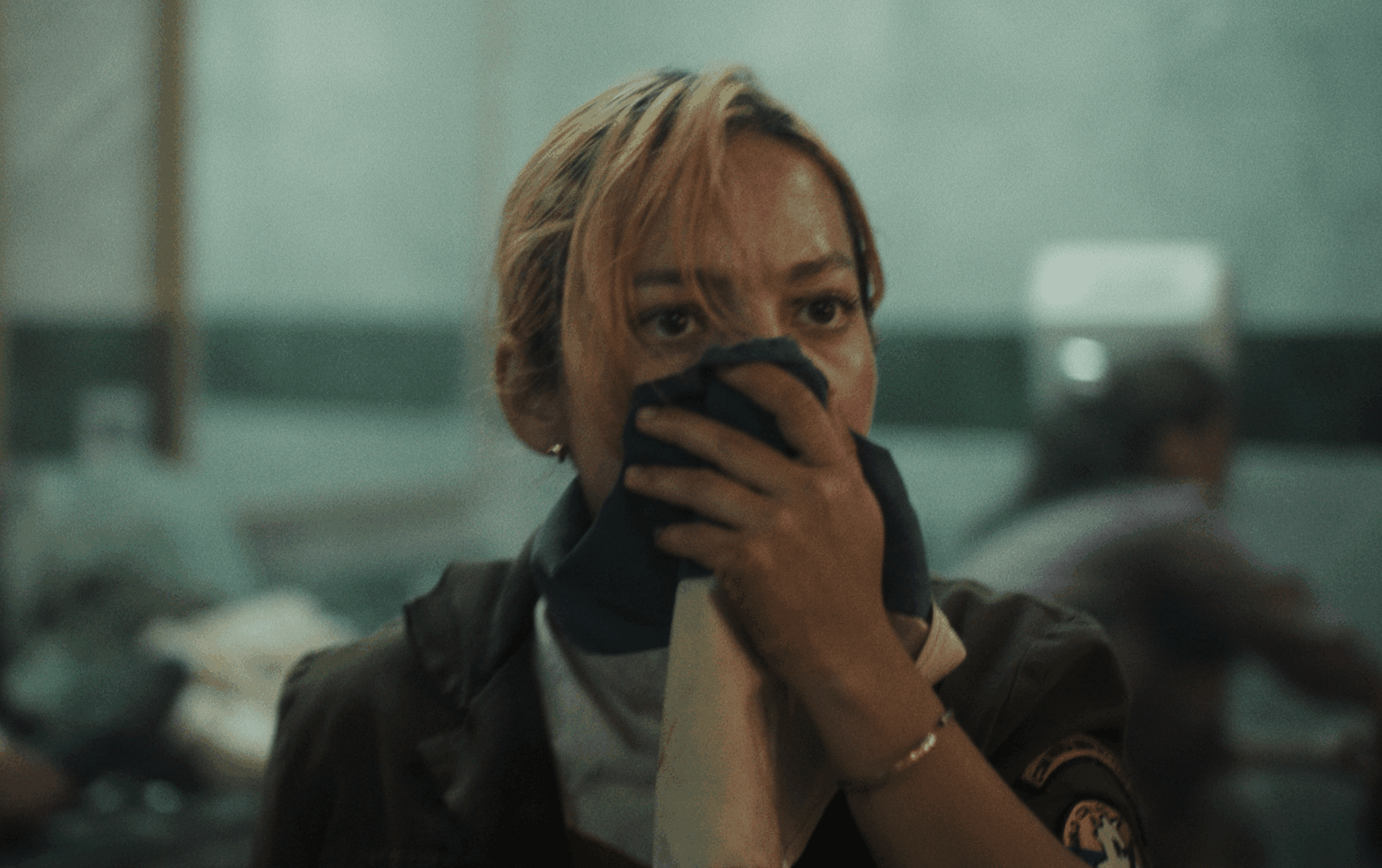 No centro desse pesadelo está Mona, interpretada com força e delicadeza por Natália Reyes. É através dela que o filme encontra humanidade no meio da barbárie. Sua postura serena diante do caos, o cuidado com os feridos e a tentativa de preservar um mínimo de empatia em meio à desumanização transformam sua personagem no coração da narrativa.