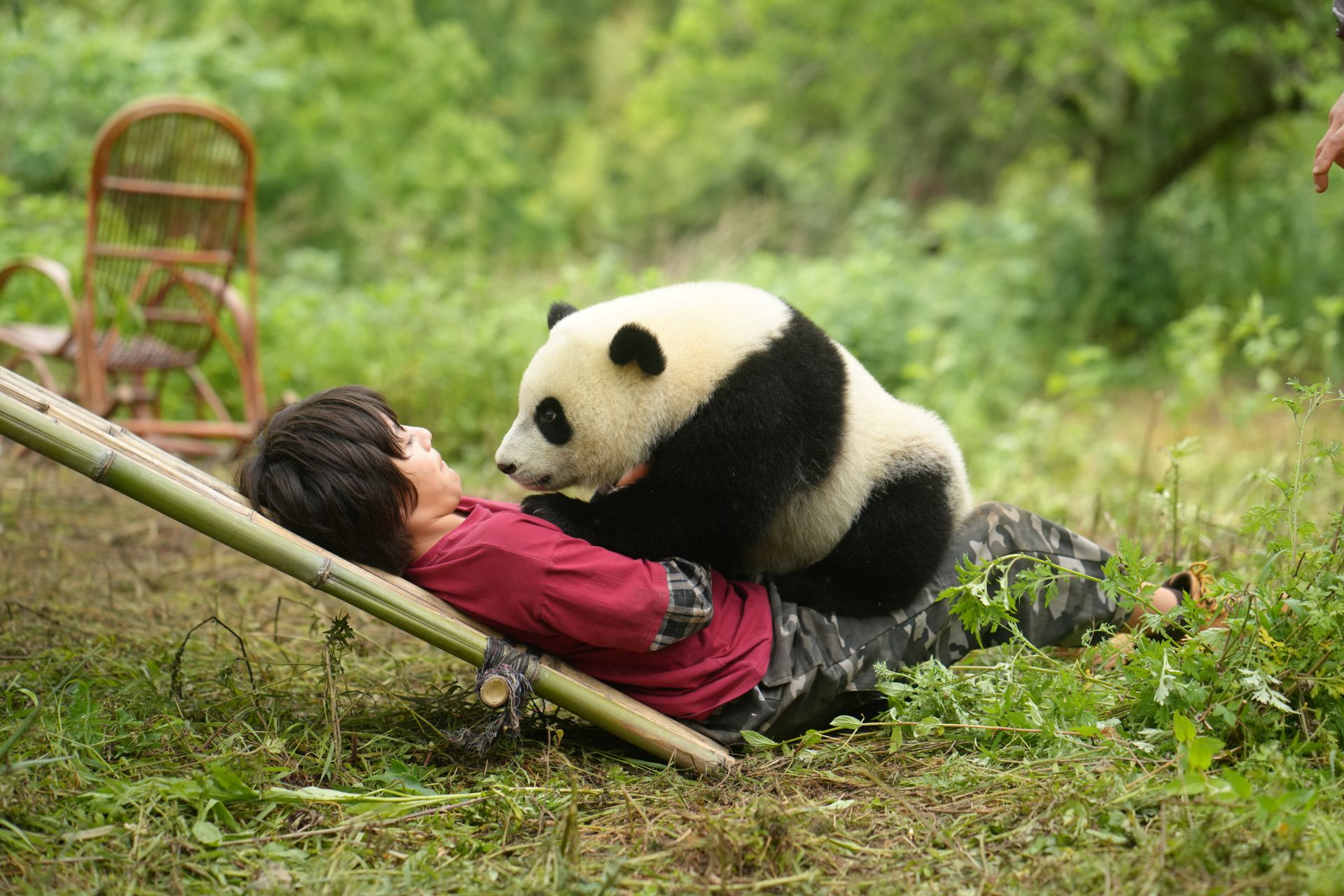 A relação entre o menino e o panda é construída de forma delicada, quase sempre sem pressa ou grandes artifícios dramáticos. De Maistre observa esse encontro como alguém interessado em registrar comportamentos, gestos e aproximações, o que confere ao filme um forte caráter quase antropológico. Em muitos momentos, a sensação é a de estar assistindo a um híbrido entre ficção e documentário, especialmente nas sequências em meio à floresta.