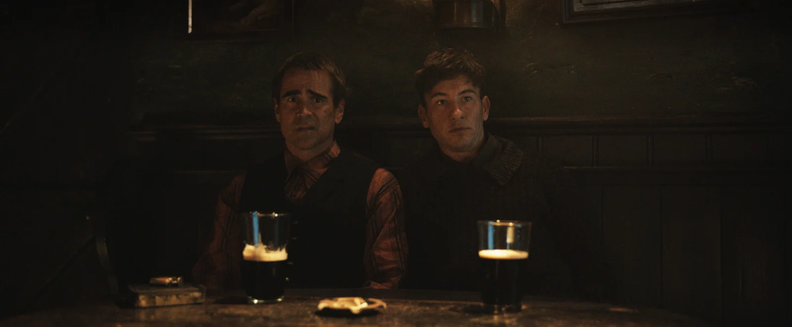 McDonagh, que já havia trabalhado com Farrell e Gleeson em Na Mira do Chefe, revisita a química inegável dos dois atores, que se entregam a atuações intensas e sem excessos. A conexão entre eles é palpável, e os diálogos simples, mas carregados de significado, trazem uma crueza que destaca o talento natural da dupla. Ao lado deles, Barry Keoghan brilha como o inocente e marginalizado Dominic, oferecendo nuances que contrastam com a seriedade de Pádraic e Colm.