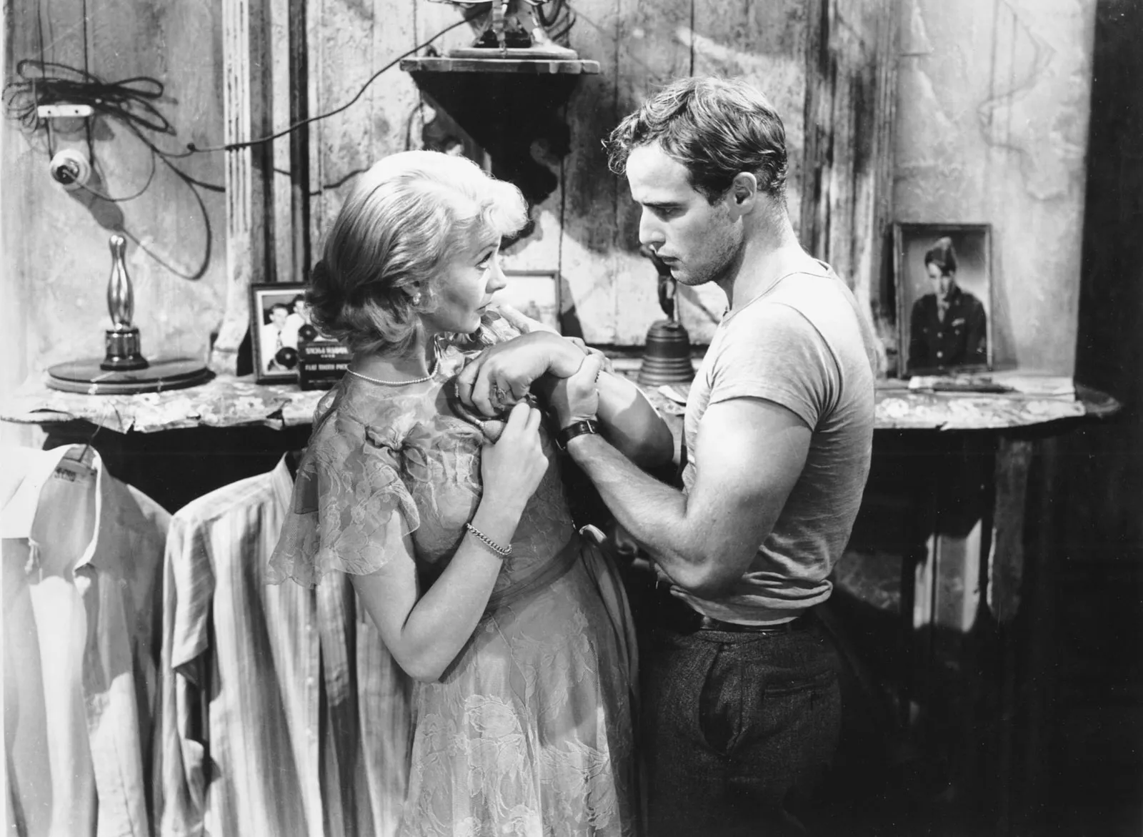 Vivien Leigh brilha como Blanche, trazendo complexidade à sua fragilidade emocional e uma fachada de sofisticação que lentamente se desmancha. Seu desempenho é uma aula de atuação, equilibrando a vulnerabilidade e a decadência da personagem com precisão. Marlon Brando, por sua vez, redefine o papel masculino no cinema com Stanley Kowalski, entregando uma interpretação visceral que demonstra a brutalidade e o carisma animalesco do personagem. A tensão entre os dois é palpável, e o contraste entre suas atuações torna a narrativa ainda mais impactante.